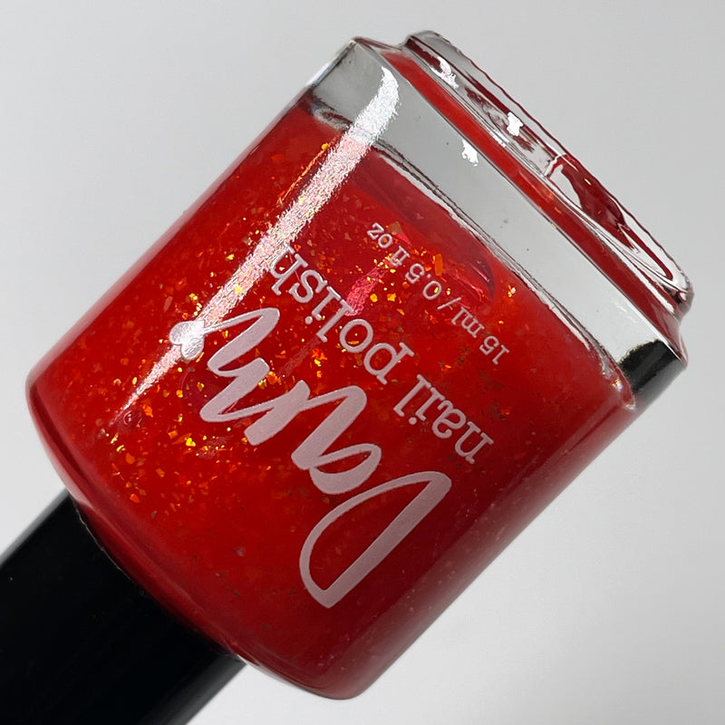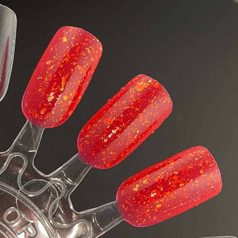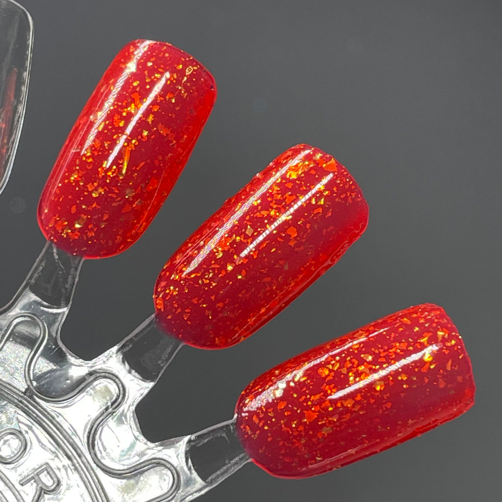 Dragon, from the Chinese Zodiac Collection by Dam Nail Polish has a red base with gold flakes.
