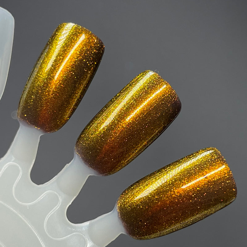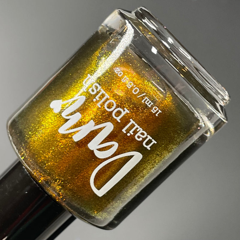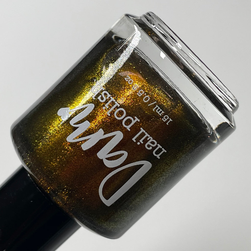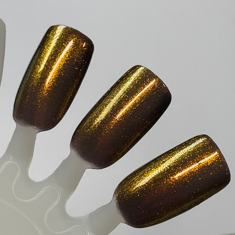 Ox, from the Chinese Zodiac Collection by Dam Nail Polish has a brown base with bronze and gold shifting shimmer.