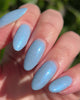 By Any Means Necessary is a light blue, with a hint of grey, polish with a subtle blue to purple sheen, blue-grey reflective glitters, and iridescent blue-green glitters. Due to the nature of the glitters, it is recommended to use a smoothing top coat.